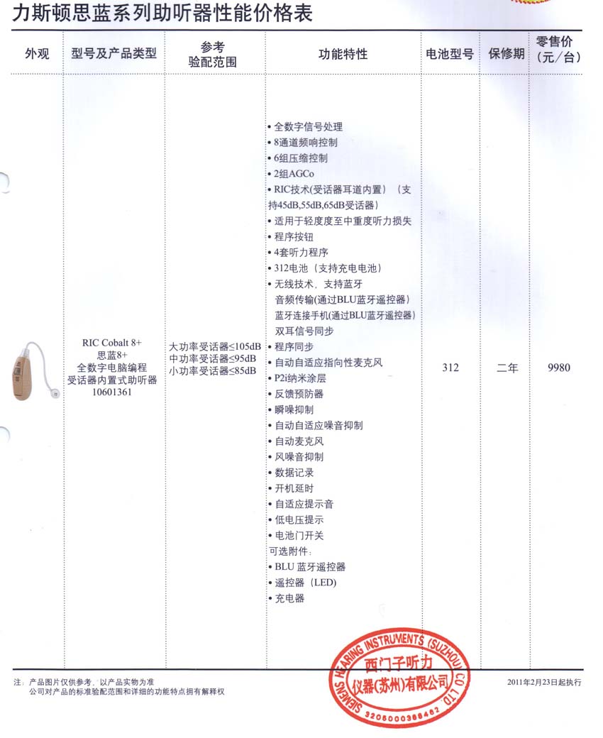 博瑞峰助听器价格表 (5)